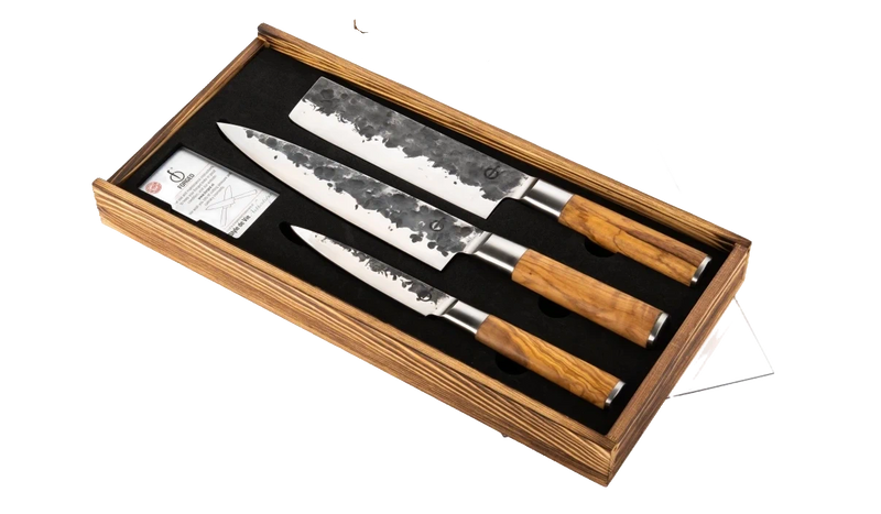 Forged Olive Messerset 3-teilig – Premium Messer mit Olivenholzgriff