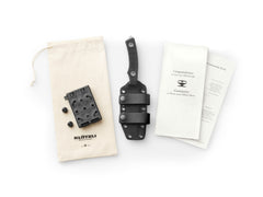 Geliefert wird das Messer mit einem schlanken Kydex Etui inklusive Leder Gurtschlaufe und zusätzlichem Tactical Clip. Dadurch lässt sich das Messer flexibel am Gürtel an der Ausrüstung oder taktisch angepasst tragen.