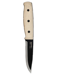 Ein handgefertigtes, robustes Full-Tang-Wildnismesser für die Expedition. Die Kombination aus dem kräftigen Griff aus sorgfältig ausgewähltem hellem Eschenholz aus europäischen FSC®-zertifizierten Wäldern zusammen mit der 3,2 mm starken, schwarzen Klinge aus recyceltem schwedischem Edelstahl macht das Messer bereit für schwere Arbeiten in der Wildnis. Der Klingenrücken ist zudem mit einem Feueranzünder kompatibel.
